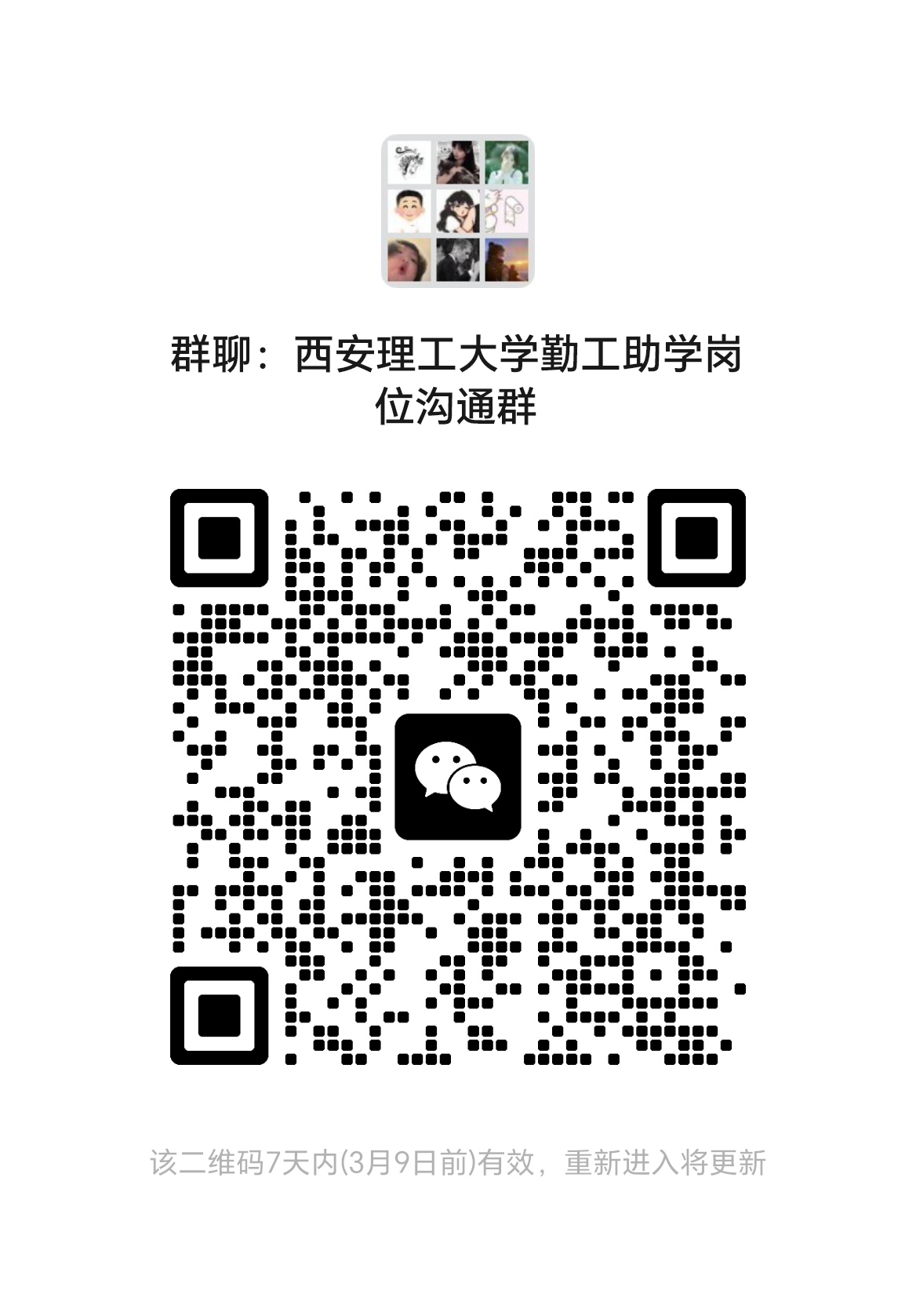 1、设岗单位指定一名工作人员负责勤工助学岗位管理工作,并及时扫码进入学校勤工助学岗位沟通群(工作人员必须为老师),群聊二维码见下图。设岗负责人需对参加勤工助学工作的学生进行考勤,如实记录学生出勤情况和工作表现。